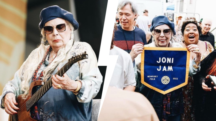 Iconic Canadian folk singer Joni Mitchell graced the Newport Folk Festival stage in Rhode Island on July 24th to deliver a stunning rendition of her classic “Both Sides Now.”