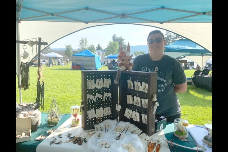 Catherine Vincenzi, originally from 100 Mile but currently based in Smithers, sells natural art and herbal remedies with her business Sticks & Brews. Photo credit: Andie Mollins, Local Journalism Initiative