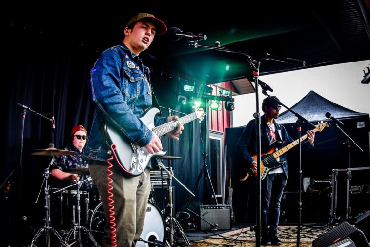 Ezra Beaton Trio at FarmFest in Terrace, mid July 2025. Photo credit: Meg Hoole on Facebook