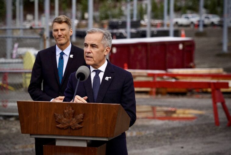 The transmission line is part of a larger strategy to take advantage of and expand the country’s clean electricity grid and ensure Canada benefits from its enormous gas and critical mineral reserves, Carney said.