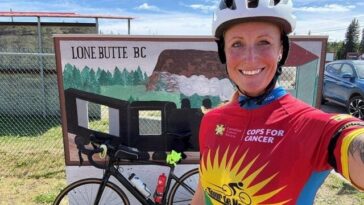 Volunteer firefighter Sharleen Bast of 150 Mile House has raised over $11,000 in the 2025 Tour de North, supporting childhood cancer research and families through the Canadian Cancer Society.
